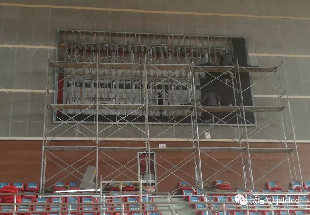 Xinghua City National Fitness Center Gymnasium LED full color P4 display is designed, produced and installed by Jiangsu Liangcai Electronics Co., Ltd. The engineer rushed to the site and completed the installation in the shortest possible time.