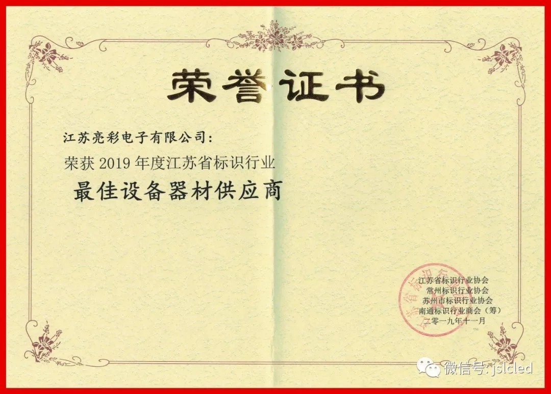 At this grand event, it was awarded "the best equipment supplier of Jiangsu logo industry in 2019". This is the honor of Jiangsu Liangcai. Thank the Association for its recognition of our company, so as to serve the association and customers better!