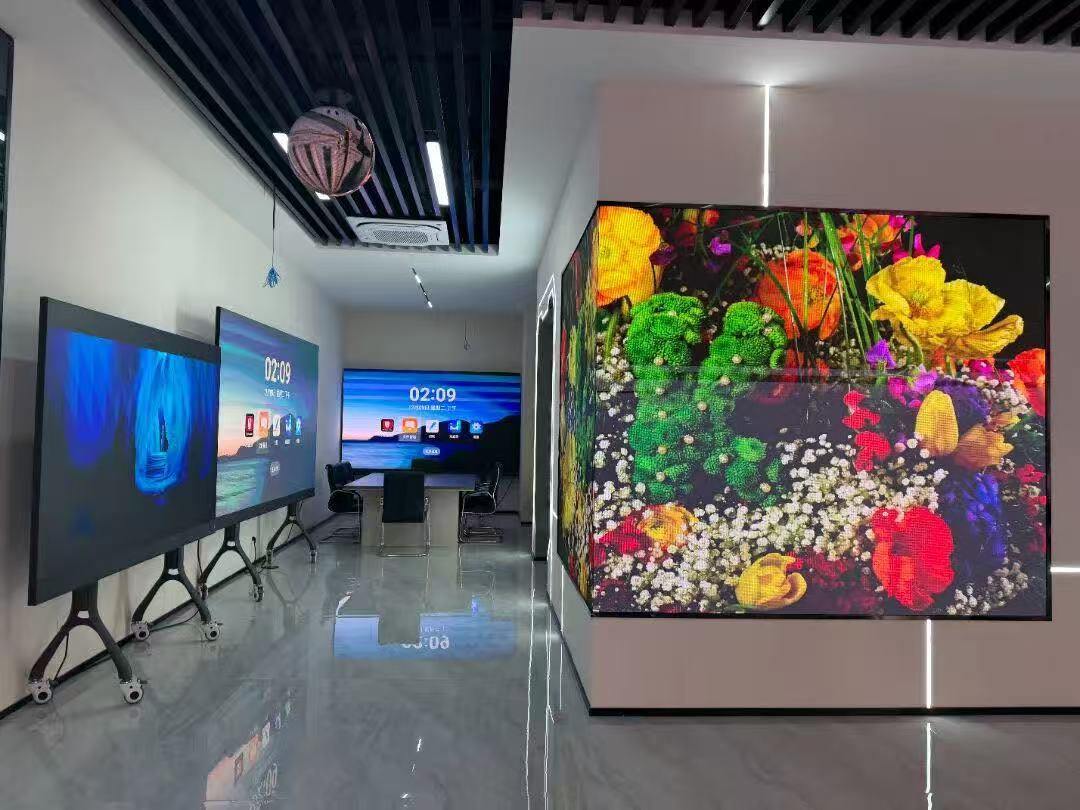 在章總的引導(dǎo)下,洪秘書長與張強(qiáng)顧問一行參觀了亮彩電子智能化展廳。展廳內(nèi)集中展示了柔性屏、貼膜屏、全息屏、變色龍、LED一體機(jī)等前沿技術(shù)產(chǎn)品,以及智慧會(huì)議、智慧教育、無紙化辦公等場景化解決方案。