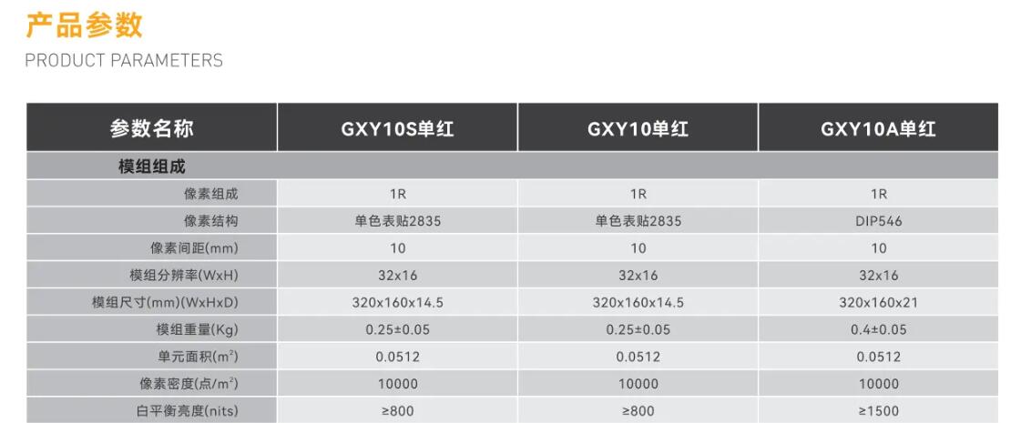 GXY單紅主要由紅色LED晶片封裝為一個像素點后,組成矩陣再固定到塑膠套件上而成。采用全彩產品線體及工藝生產,套件采用一體化成型,具有輕薄,平整度好等特點??墒褂贸R幍膯坞p色同步和異步驅動卡驅動,顯示文字和圖像。與恒壓驅動的方案比較,本產品顯示亮度更穩定,文字、圖像更清晰。適用市面主流控制系統,連接到LED顯示屏控制系統即可顯示視頻、圖像和文字信息。